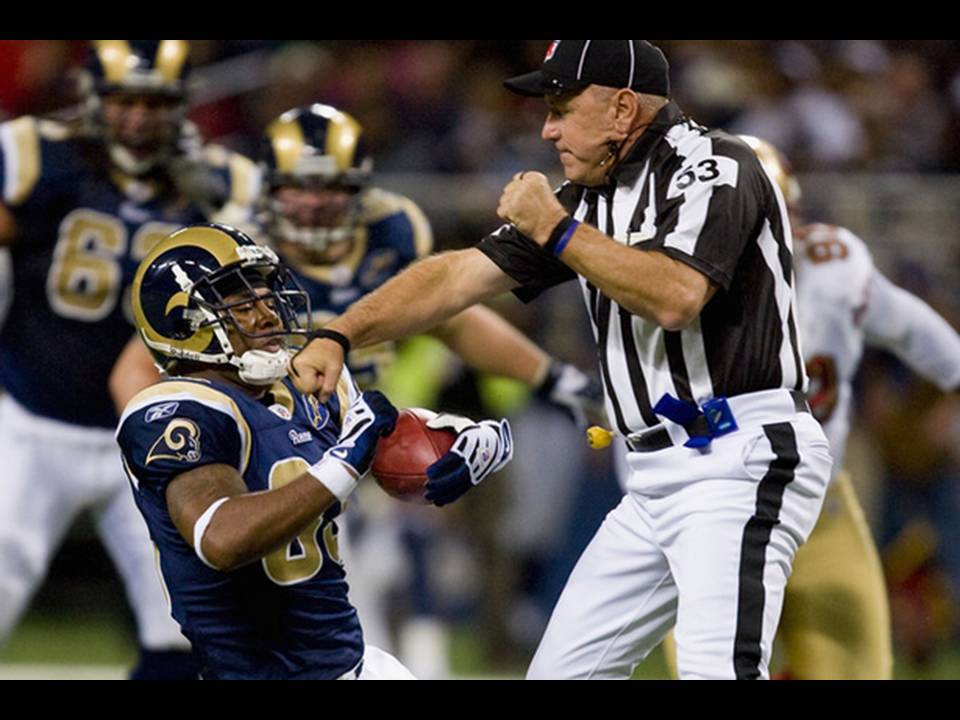 What the hell is the ref in the picture thinking? Was he carrying out some kind of “Fight Club” assignment? Or just a crazy flashback? Or was he frustrated because he bet on the Rams? Regardless, he is a badass. His name is Garth DeFelice and he is not to be fucked with.